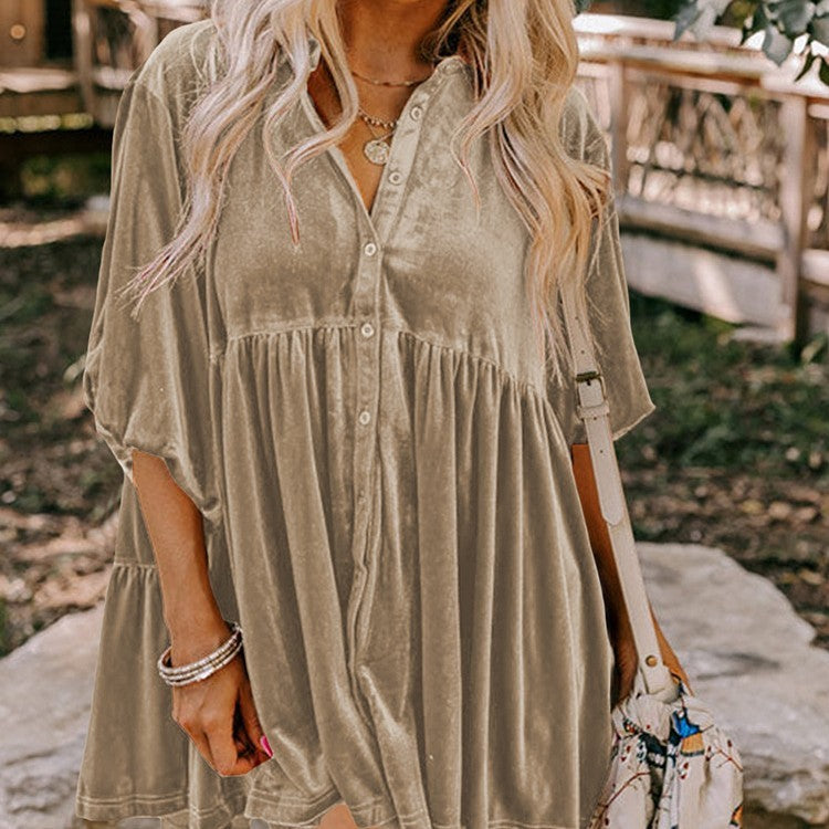 Regular price $20.58 USDSale price $20.58 USD Regular priceUnit price perSale Sold outProduct information: Pattern: solid color Size: S,M,L,XL Popular elements: Button Style: pullover Main fabric composition: Polyester (polyester fiber) Length: medium length (65cm Sleeve length: 3/4 sleeve...